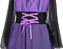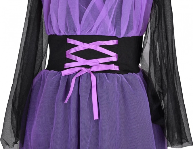 Transformez votre petite coquette en mystérieuse sorcière. La robe noire et violette avec une couche aérienne de tulle et un laçage décoratif sur le corsage crée un costume marquant tout en restant confortable. Le textile léger est agréable à porter et n’entrave pas les mouvements, idéal pour une soirée entière de fête.