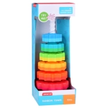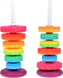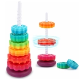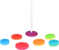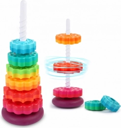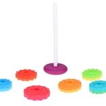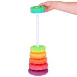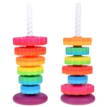 Cette tour hélicoïdale colorée capte l’attention des enfants grâce à ses couleurs vives et au glissement fluide des anneaux le long de la tige spiralée. En jouant, les enfants développent naturellement la prise en main, la précision des mouvements et apprennent à distinguer les tailles. Grâce au plastique résistant et à la base stable, le jeu est sûr et intuitif.