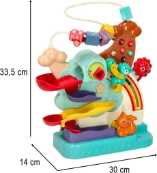 Des couleurs vives et le mouvement fluide des billes renforcent la perception visuelle, tandis que la manipulation des éléments affine la motricité fine. L’enfant se familiarise en douceur avec les chiffres et apprend les relations de causalité.