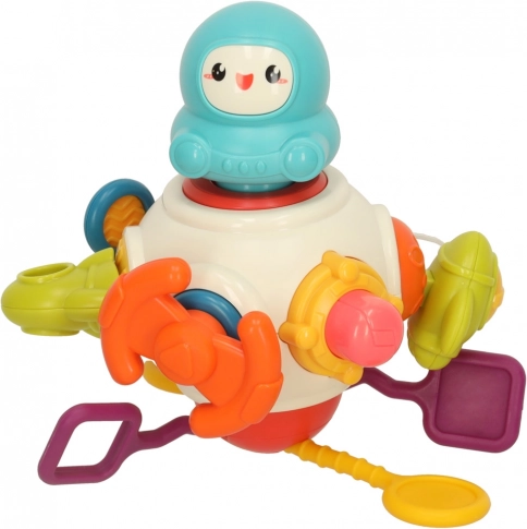 Ce jouet sensoriel polyvalent avec un personnage adorable offre aux enfants de nombreuses façons de découvrir le monde des touchers, des couleurs et des mouvements. Grâce à ses textures variées, à ses éléments rotatifs, coulissants et à presser, les enfants entraînent leur coordination œil–main et renforcent leurs petits doigts. Les parties en silicone souple servent également d’anneau de dentition sûr qui aide à apaiser les gencives irritées.