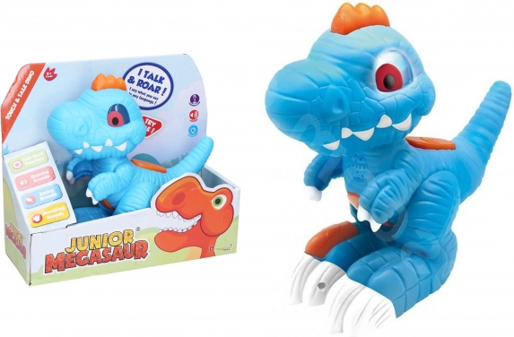 Nous vous présentons un dinosaure parlant interactif unique, qui fascine non seulement par sa voix de dino réaliste, mais aussi par d'autres effets sonores uniques. En appuyant sur le bouton au dos, vous entendrez un authentique rugissement de dinosaure. Activation de différents sons: