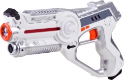 Grâce à l’utilisation d’un signal lumineux codé, aucune munition n’est nécessaire. Profitez d’effets lumineux et sonores réalistes qui augmentent la tension et la motivation de jeu. On peut jouer en solo ou en équipe avec des amis. Tous les composants sont soigneusement fabriqués en plastique de haute qualité.