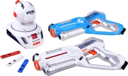Paramètres techniques : Dimensions du pistolet : env. 28,5 cm x 18 cm x 4,5 cm Dimensions du projecteur : env. 17 cm x 15 cm x 12 cm Alimentation : - Pistolet 1 : 4 x piles AA (non incluses) - Pistolet 2 : 4 x piles AA (non incluses) - Projecteur : 4 x piles AA (non incluses)