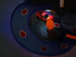L'ascenseur déplace en douceur les petites voitures à l'étage supérieur pour le lavage puis les redescend pour le séchage. Le concept à deux niveaux apporte plus d'action et développe la motricité fine.