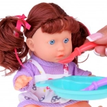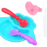 Le biberon, la tétine et l’assiette avec couverts encouragent le jeu autour du repas et de la routine de soins. Des accessoires comme le pot ou la serviette complètent l’expérience authentique du rôle de « petit parent ».