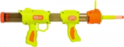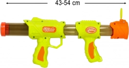 Entrez dans un monde d’imagination et d’action ! Le blaster pour enfants 2‑en‑1 combine les tirs avec des billes en mousse et des fléchettes en mousse pour une variété de jeu maximale. Grâce au chargement frontal facile et au mécanisme à pompe, même les plus jeunes peuvent l’utiliser. Les munitions souples sont douces tout en restant amusantes.