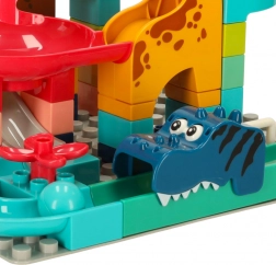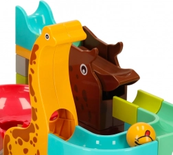 La girafe, le crocodile et d’autres motifs ne sont pas que décoratifs : ils constituent des parties actives du parcours, rendant la descente des billes encore plus palpitante.