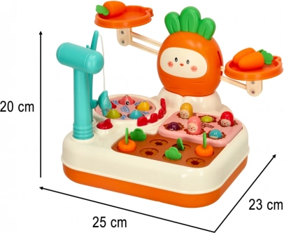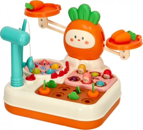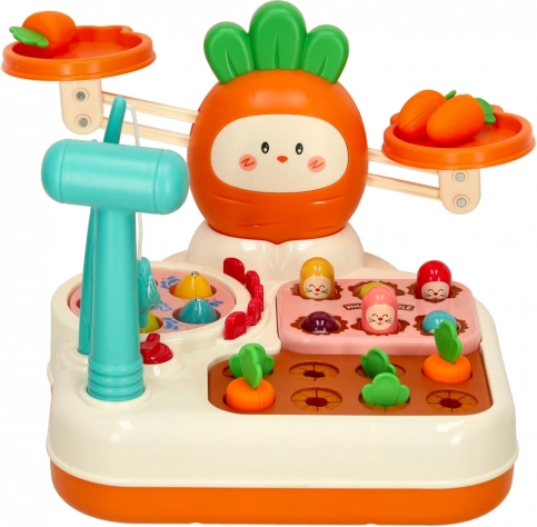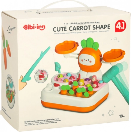 Jouet éducatif 4‑en‑1 pour enfants : balance carotte avec pêche et petit marteau