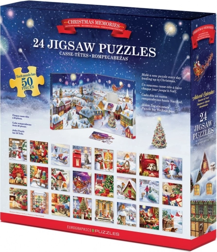 Rendez l’attente de Noël plus ludique avec cet original calendrier de l’Avent EUROGRAPHICS. Il contient 24 images de puzzle différentes sur le thème de Noël, chacune de 50 pièces, au format carré 12,5 × 12,5 cm. Le calendrier comporte 24 fenêtres, est réutilisable et chaque fenêtre inclut le modèle de l’image à assembler.