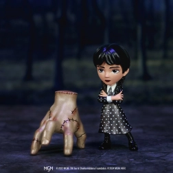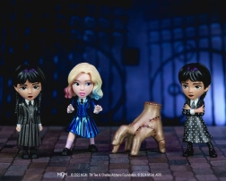 Les figurines capturent les personnages populaires de la série, comme La Main Thing et Wednesday dans différentes tenues.