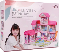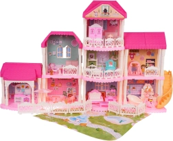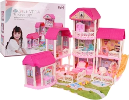 Découvrez la belle et grande maison rose, idéale pour les enfants à partir de trois ans. Cette maison féerique se compose de 4 modules détachables, que vous pouvez combiner librement. La maison offre un salon entièrement équipé, une salle de bain, une chambre, une cuisine et un dressing. Il y a également une chambre d'enfant et une zone de détente extérieure.