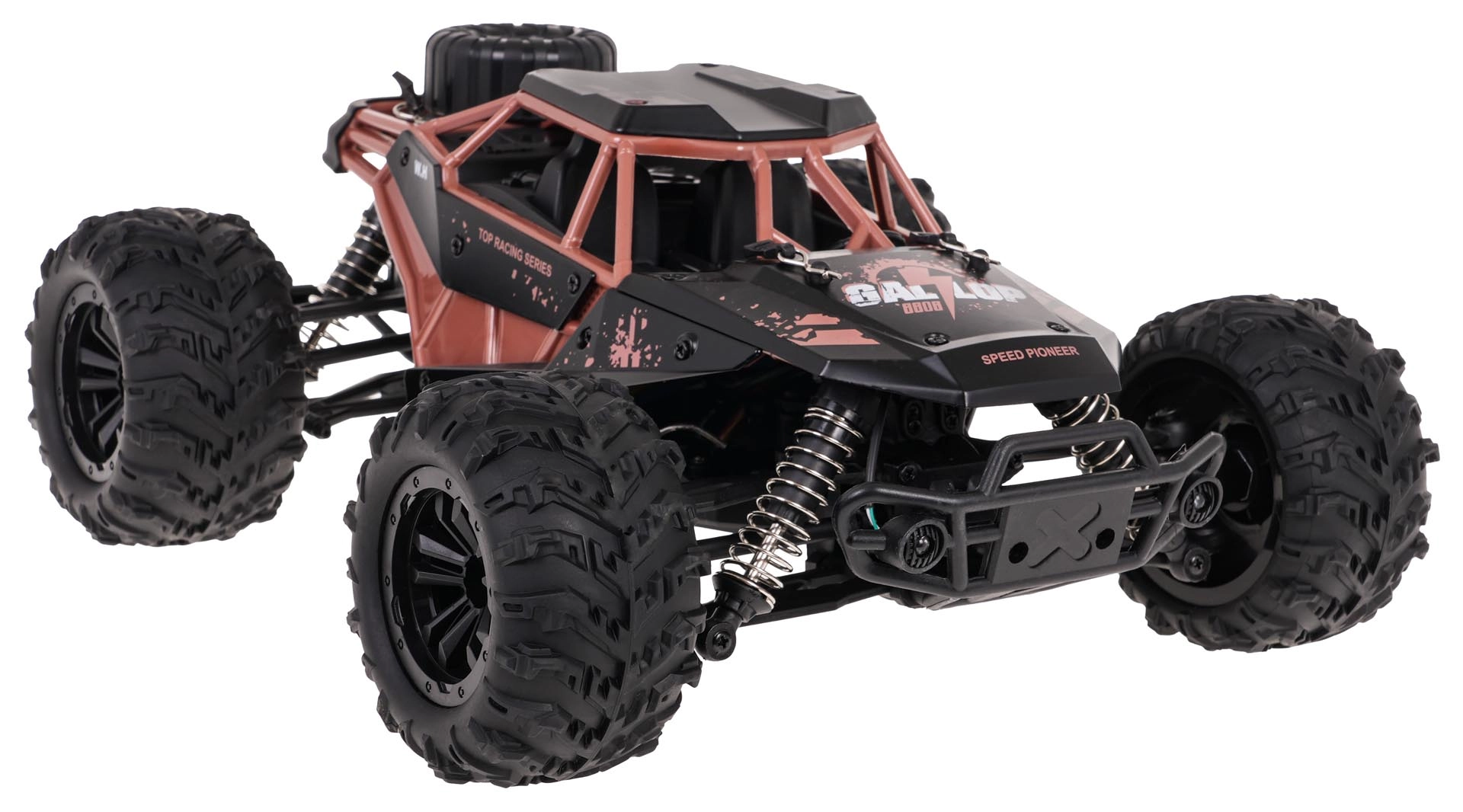 GALLOP est une voiture RC tout-terrain robuste conçue pour s’amuser en intérieur comme en extérieur. La carrosserie métallique et la structure résistante aux collisions augmentent la longévité du modèle, tandis que la suspension à ressorts indépendante et les grandes roues gèrent bosses, pierres et obstacles. Grâce aux phares LED, vous pouvez continuer à rouler même dans l’obscurité.