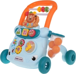 Ce porteur et trotteur coloré accompagne les premiers pas et stimule le développement sensoriel. Il offre une construction stable avec possibilité d'alourdir, un large empattement avec bande de roulement en caoutchouc, un panneau interactif riche en activités, un petit piano amovible et un panier à balles. Idéal à partir de 18 mois.