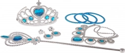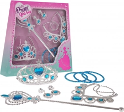 Ce coffret richement équipé transforme chaque jeu en un conte de fées. Les “diamants” en plastique brillants et les imitations de pierres précieuses au design argent‑bleu apportent une touche d’éclat à toute tenue de princesse. Les accessoires sont conçus avec un sens du détail et un grand confort de port.