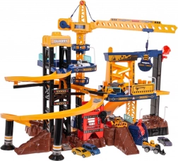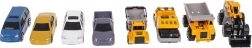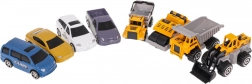 - Comprend 4 petites voitures et 4 véhicules de chantier comme bulldozer, benne, etc.