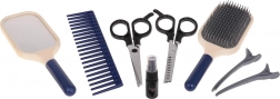 - sèche-cheveux, .- embout supplémentaire pour sèche-cheveux avec diffuseur, .- embout interchangeable pour sèche-cheveux avec concentrateur, .- lisseur, .- ciseaux, .- ciseaux effileurs, .- peigne, .- brosse à cheveux, .- support pour sèche-cheveux, .- miroir, .- flacon pour cosmétiques capillaires, .- 2 x pince à cheveux. . |