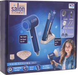 - sèche-cheveux env. 22 cm x 8,5 cm x 6 cm, .- sèche-cheveux avec diffuseur env. 22 cm x 12,5 cm x 10,8 cm, .- sèche-cheveux avec embout concentrateur env. 22 cm x 13,5 cm x 6 cm, .- lisseur fermé env. 20,5 cm x 3 cm x 3,5 cm, .- lisseur ouvert env. 20,5 cm x 3 cm x 6 cm, .- ciseaux env. 14 cm x 6 cm x 0,5 cm, .- ciseaux effileurs env. 14,5 cm x 6,5 cm x 0,5 cm, .- peigne env. 15 cm x 4 cm x 0,5 cm, .- brosse à cheveux env. 18 cm x 6,5 cm x 2,5 cm, .- support pour sèche-cheveux env. 13,5 cm x 5,5 cm x 8 cm .- miroir env. 18,5 cm x 6,5 cm x 1 cm, .- flacon pour cosmétiques capillaires env. 8 cm x 2 cm, .- pince à cheveux env. 9 cm x 2,5 cm x 1,3 cm, .- emballage env. 27,8 cm x 7 cm x 25,5 cm, . |