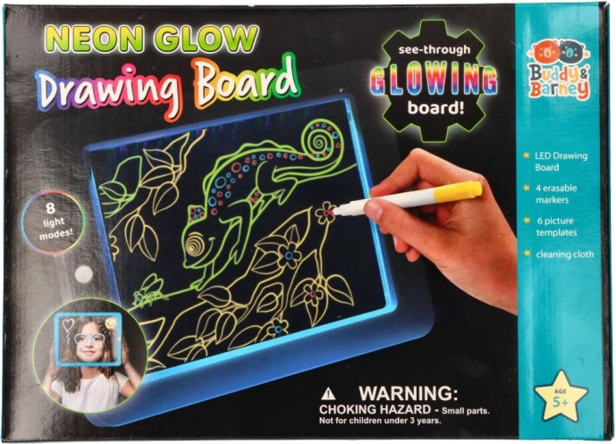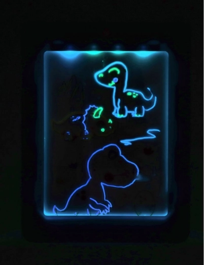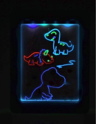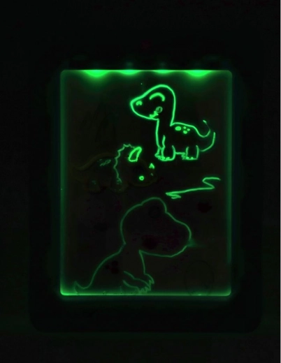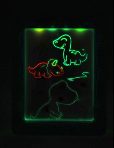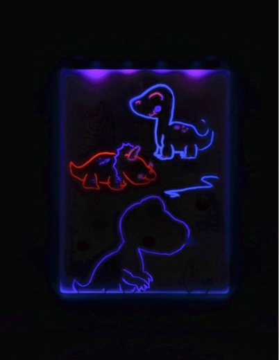 Découvrez un amusement qui brille ! La tablette LED néon pour enfants combine une surface rétroéclairée et des feutres colorés pour des effets lumineux spectaculaires. Elle propose 7 modes LED, un effacement facile et le travail avec des pochoirs dinosaures/animaux/espace. Parfaite pour stimuler la créativité, la motricité fine et la concentration – cadeau idéal dès 5 ans.