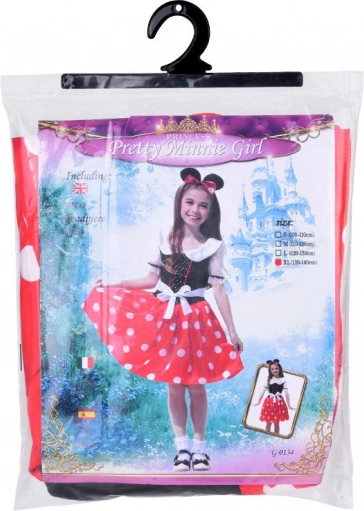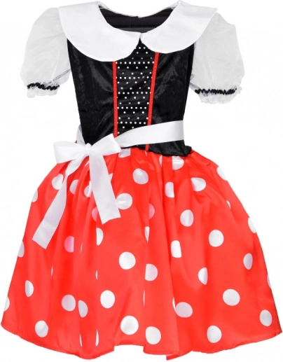 Adorable costume pour fille avec jupe rouge à pois et corsage noir à col blanc, idéal pour le carnaval, les anniversaires et les spectacles scolaires. Un serre-tête avec oreilles et nœud complète la tenue. Le costume est confortable, facile à enfiler et stimule l’imagination, le jeu créatif et le plaisir de se déguiser.