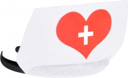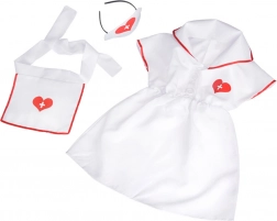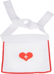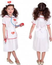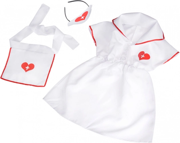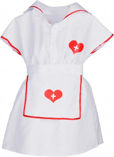 La robe blanche à liserés rouges, les cœurs avec croix et le tablier composent un look classique d’infirmière que les enfants adorent.