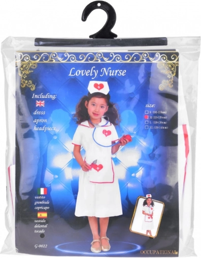 Un costume d’infirmière pour enfants à la fois mignon et réaliste, en taille L/XL (130–140 cm), qui favorise le jeu de rôle, le développement de l’imagination et l’empathie. L’ensemble comprend une robe blanche avec liserés rouges, un tablier avec cœur et croix et un serre-tête/coiffe – le tout dans un style médical classique.