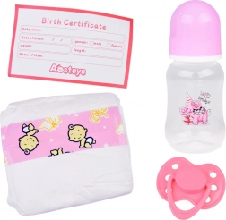 Inclus : biberon, tétine magnétique, couche et certificat de naissance – tout pour prendre soin du bébé de manière réaliste.