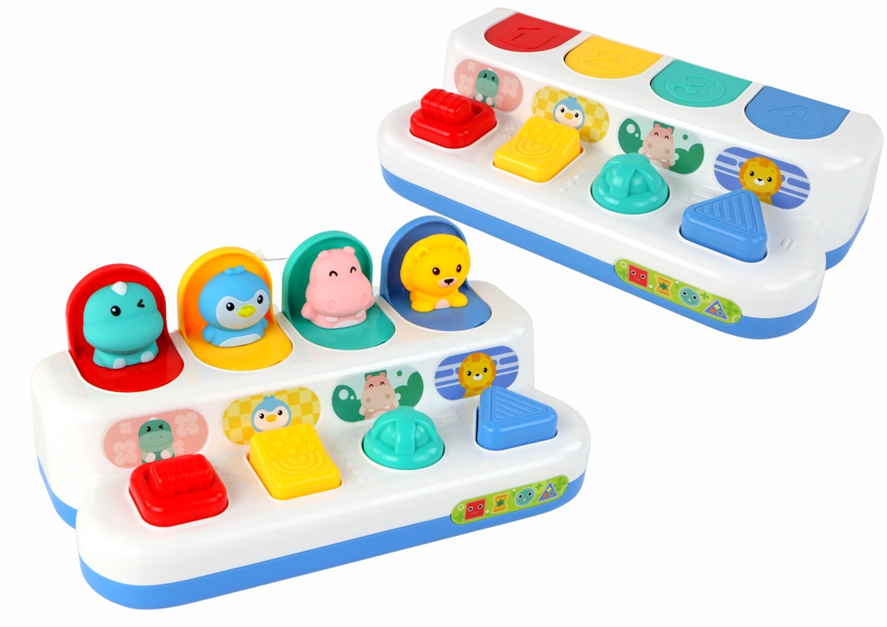 Le jouet propose deux niveaux de jeu. Le premier niveau comprend 4 boutons de formes et de reliefs différents. Ces boutons encouragent les tout-petits à interagir et à explorer, tout en développant leurs capacités sensorielles et motrices.