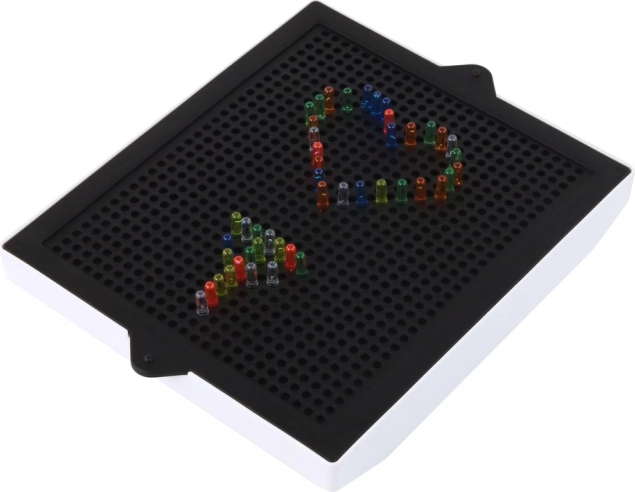 Le panneau lumineux avec une grille de trous permet d’insérer facilement des picots translucides et de créer des motifs éclatants. Grâce aux modèles fournis, vous pouvez vous laisser guider par des patrons prêts à l’emploi ou composer vos propres designs. La table est alimentée par 3 piles AA (non incluses).