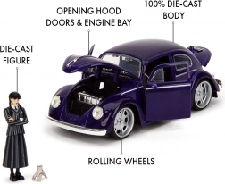 Set de collection officiellement licencié par Jada Toys comprenant l’iconique Volkswagen Beetle (1972) à l’échelle 1:24 et une figurine de Wednesday Addams incluant la Main (Thing). Conception en métal avec portes, capot et couvercle de moteur ouvrants, pneus en caoutchouc et détails précis pour un excellent plaisir d’exposition comme de jeu. Idéal pour les fans de la série Wednesday et les collectionneurs dès 8 ans.