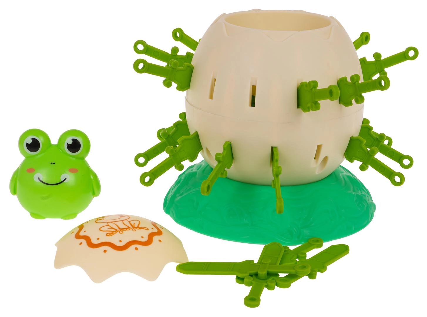 Un jeu d’adresse amusant pour les enfants dès 3 ans, où les joueurs insèrent des petites épées dans la coquille d’un œuf sans effrayer la grenouille à l’intérieur. Le jeu entraîne l’observation, la motricité fine et apporte beaucoup de rire pour toute la famille.
