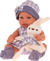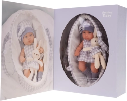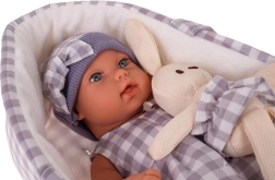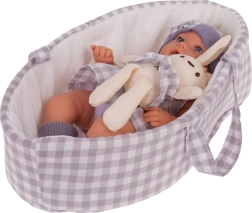 Adorable poupée-bébé dans un couffin souple avec un lapin en peluche, idéale dès 3 ans. Elle a les bras, les jambes et la tête articulés, une tenue facile à enlever et un couffin textile léger avec anses pour un transport confortable. Jouer avec la poupée stimule la motricité fine et l’imagination.