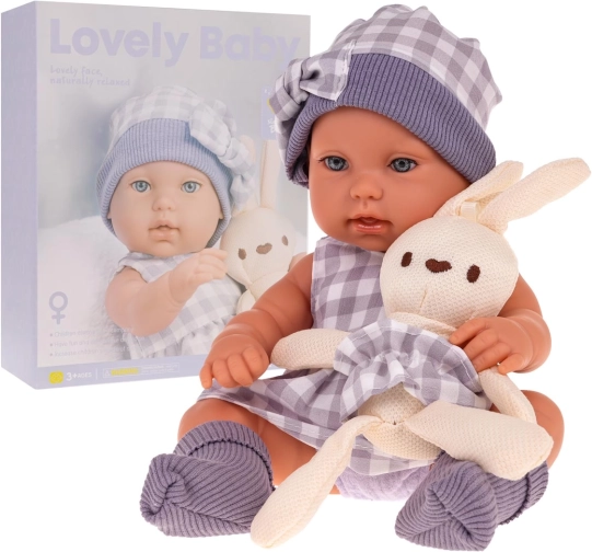 Cette poupée bébé soigneusement conçue deviendra une compagne chérie pour le jeu quotidien. Grâce à ses articulations, elle s’habille et se déshabille facilement, le couffin avec anses souples permet de l’emporter partout, et le lapin en peluche ravit comme doudou tout doux.