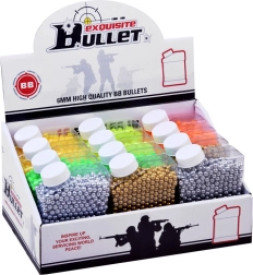 Ce réservoir pratique est rempli de billes plastiques de 6 mm, qui sont adaptées à divers types d'armes airsoft. Les enfants peuvent profiter de heures de plaisir pendant les jeux de tir. Nous recommandons l'utilisation de lunettes de protection pendant le jeu pour la sécurité de tous les participants.