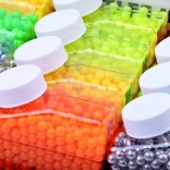 Le récipient permet un stockage et une manipulation faciles des billes.