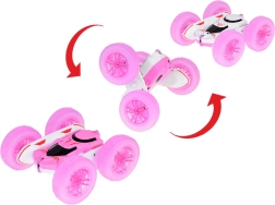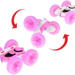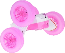 Amusante voiture RC double face pour enfants, capable de rotations à 360°, de rouler en avant/arrière et de réaliser des figures de cascade. De grandes roues en caoutchouc au profil marqué et des effets lumineux garantissent l’action à l’intérieur comme à l’extérieur. Commande en 2,4 GHz, batterie rechargeable et construction robuste pour un divertissement sans fin.