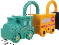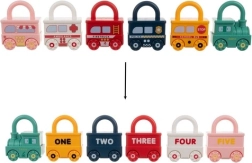 Ce jouet éducatif malin allie plaisir et apprentissage. Chaque véhicule est une serrure et possède sa clé assortie en forme d’ourson, gravée du chiffre 0–5. L’enfant entraîne ainsi naturellement la motricité fine, la pensée logique et la reconnaissance des chiffres. La partie supérieure du cadenas pivote à 360° et, une fois correctement déverrouillés, les véhicules se connectent facilement pour former un long petit train.