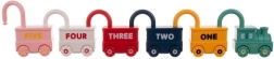Chaque véhicule porte un chiffre de 0 à 5 et son nom en anglais, permettant aux enfants d’apprendre à compter et leurs premiers mots de façon ludique.
