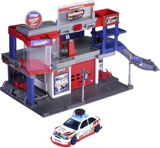Découvrez le garage de tuning à deux niveaux en édition limitée Japan Series de la marque Majorette avec effets lumineux et sonores, ascenseur manuel, lanceur et éléments ouvrants. Inclus, un modèle sous licence HONDA Civic Type R EK9 à l’échelle 1:64, idéal pour les petits passionnés d’automobiles.
