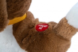 Il sait s’asseoir, se promener dans la pièce et lever la patte. Ses mouvements naturels encouragent l’imitation et stimulent l’imagination pendant le jeu.