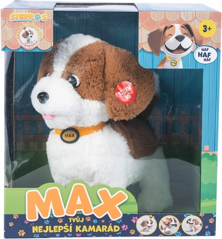 Le adorable chiot interactif Max deviendra le meilleur ami de vos enfants. Il sait s’asseoir, marcher, lever la patte, tirer la langue et aboyer. Il réagit instantanément aux caresses et aux contacts, est agréablement doux et idéal pour les câlins comme pour le jeu.