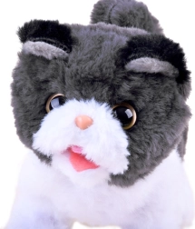 Le chat interactif est fabriqué en matériau pelucheux doux avec des yeux et un nez en plastique, ce qui lui confère une apparence réaliste.