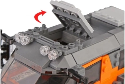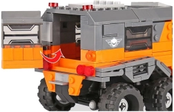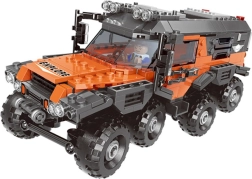 Ce superbe kit de construction permet d’assembler un véhicule tout-terrain. Les blocs vous permettront de construire un véhicule à 8 roues pour des missions spéciales. Le grand avantage, c’est qu’une fois assemblé, le véhicule possède des parties mobiles. Les blocs techniques, en orange et noir, ont été réalisés avec beaucoup d’effet.