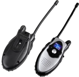 Le kit offre une portée de 150–200 m en terrain dégagé (selon le relief et les conditions). Les antennes flexibles sont résistantes à la casse et les dimensions compactes tiennent bien dans la main des enfants. L’emballage en boîte cadeau colorée est prêt à offrir.