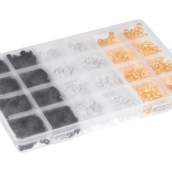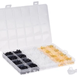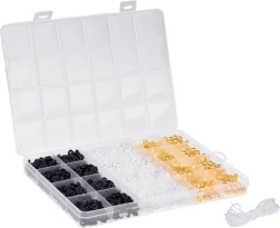 L'ensemble contient une boîte en plastique transparente, divisée en plusieurs compartiments, ce qui permet un accès facile et une organisation des perles de différents styles et couleurs.