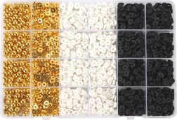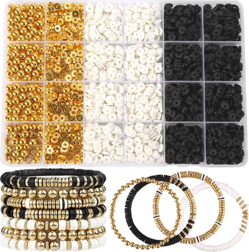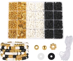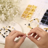 Avec notre ensemble créatif de perles, vous pouvez créer non seulement des bracelets mais aussi des colliers, des boucles d'oreilles ou des bagues – la seule limite est votre imagination! Les couleurs classiques telles que le blanc, le noir et l'or garantissent que les bijoux résultants seront non seulement uniques mais aussi très élégants. Les bijoux faits à la main sont aujourd'hui parmi les accessoires les plus à la mode.