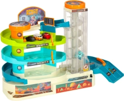 Les enfants peuvent observer les voitures se déplacer sur la piste à l'aide d'un ascenseur électrique et des chemins sinueux, soutenant le développement de la vision.