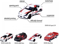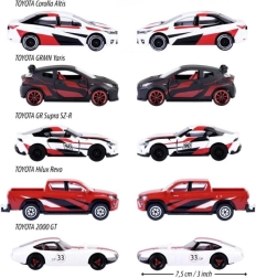 Ce coffret cadeau ravira tout fan de sport automobile et de la marque TOYOTA. Dans l’emballage, vous trouverez cinq modèles légendaires – GR Supra, GRMN Yaris, Hilux Revo, Corolla Altis et 2000 GT – dans un style de course uniforme. Les carrosseries métalliques, les marquages détaillés et les éléments ouvrants fonctionnels confèrent aux petites voitures un aspect réaliste.