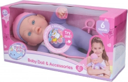 Adorable bébé de 31 cm qui ravira chaque petit soignant. Il a un corps souple, réagit à la pression sur le ventre et propose 6 effets sonores. La boîte contient une petite bouteille et une tétine et il est prêt à jouer dès l’ouverture grâce aux piles incluses.