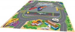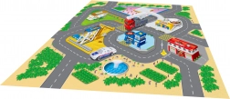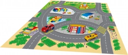 - Tapis de jeu en textile, 2 véhicules de transport en métal
