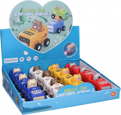 Adorable petit animal dans une voiture de 9 cm qui ravira chaque petit enfant. La voiture est à remontoir et démarre après avoir appuyé sur l’animal vers le bas. Disponible en 4 variantes de couleurs – rouge, bleu, blanc et jaune. Idéal comme petit cadeau ou divertissement en voyage.